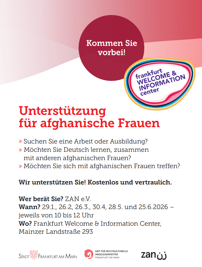 Bei Fragen wenden Sie sich gerne jederzeit an das Team des Frankfurt Welcome & Information Center unter 069 / 212-41515 oder amka.info@stadt-frankfurt.de