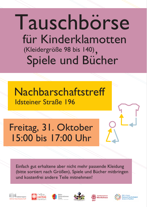 31Okt15:0017:00Tauschbörse für Kinderklamotten, Spiele und Bücher