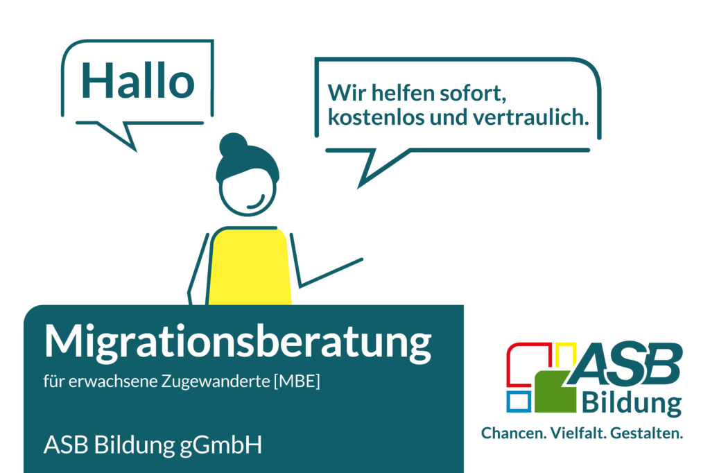 Migrationsberatung für erwachsene Zugewanderte (MBE): Wir bieten zugewanderten Erwachsenen kostenlose Beratung und Unterstützung für einen guten Start in Deutschland. Wir helfen bei Fragen zu den Themen Wohnen, Arbeit, Ausbildung, Deutschlernen und Aufenthalt. Wir vermitteln auch in passende Förder- und Integrationsangebote und helfen auch bei Behördengängen oder dem Zugang zu weiteren Beratungsstellen.